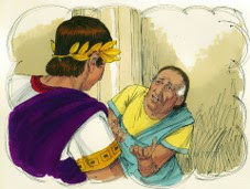 How much is the one hundred denarii?    As talked about before, one denarius is one day’s wages.   Thus, it is 100 days’ worth of wages, which is not a small amount of money.    However, when it is compared with the 100 talents forgiven, it is truly minuscule.   Here is a math: 16,000*365/100 = 58,400.  Roughly speaking, it is about 58,000 times more than what is owed by the fellow servant.   The servant could not forgive the other servant’s debt, which was about 58,000 times smaller.   This is plainly ridiculous.