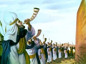 Now Jericho was shut up inside and outside because of the people of Israel. None went out, and none came in. And God said to Joshua, “See, I have given Jericho into your hand, with its king and mighty men of valor. You shall march around the city, all the men of war going around the city once. Thus shall you do for six days. Seven priests shall bear seven trumpets of rams’ horns before the ark. On the seventh day you shall march around the city seven times, and the priests shall blow the trumpets. And when they make a long blast with the ram’s horn, when you hear the sound of the trumpet, then all the people shall shout with a great shout, and the wall of the city will fall down flat, and the people shall go up, everyone straight before him.” (Joshua 6:2-5)