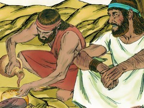 Gideon’s heart was in joy, and he hurried home. He cooked a young goat, and with a basket of flour he baked some bread without yeast. Then, carrying the meat in a basket and the broth in a pot, he brought them out and presented them to him, who was under the great tree.