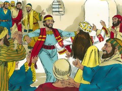 There was a wedding celebration in the village of Cana in Galilee. It was a big feast, and many guests came. All of Jesus’ family were at the wedding. The wedding was closely relatives to the Jesus’ family. Jesus disciples were also invited to the celebration. The wedding celebration place was full of people.