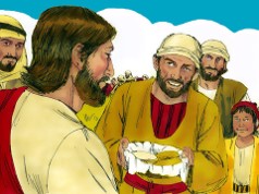 Suddenly, one boy came to Andrew, one of the twelve disciples, Simon Peter’s brother. The boy presented five barley loaves and two small fish to Andrew, which was prepared by the boy’s mother for the boy in the morning. The small boy needed his own food for himself, but with a heart of sharing, he was willing to share with his food with others. Both the boy and Andrew knew the food presented by the small boy was literally nothing for the huge crowd. Even so, Andrew presented the small amount of food to Jesus, which was offered by the small boy.