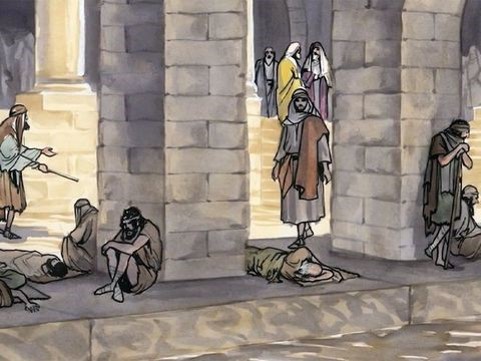 Jesus returned to Jerusalem for one of the Jewish holy days. Inside the city, near the Sheep Gate, was the pool of Bethesda, with five covered porches. Crowds of sick people—blind, lame, or paralyzed—lay on the porches. One of the men lying there had been sick for thirty-eight years.