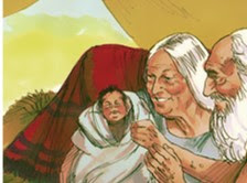 One day Abraham was sitting at the entrance to his tent during the hottest part of the day. He looked up and noticed three men standing nearby. When he saw them, he ran to meet them and welcomed them, bowing low to the ground.