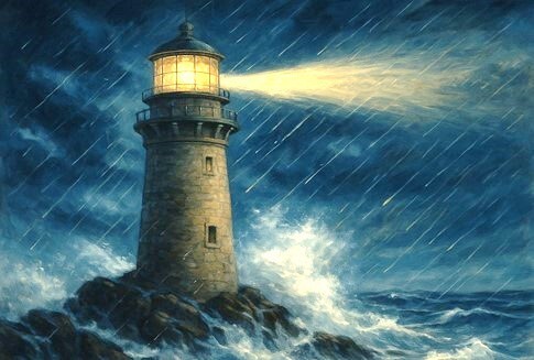 Imagine a lighthouse on a storm-battered coast. Waves crash against its walls; wind howls around its tower. The sea roars and rages, but the lighthouse does not move. Through the darkest night, its light continues to shine — steady, unwavering, guiding every lost ship back toward safety.