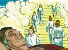 Jacob was sent to Laban, his uncle, who lived about 1,000 km away. He had to travel through wildernesses, foreign cities, valleys and dangerous places. Jacob looked back his home where he had all good things while lonely walking away from home. It was not long after his departure that the first night fell. Jacob was alone in wilderness. He found a stone to lay his head, and lied down while looking up the dark chilly night sky lonely. He begged sleep, but it was really difficult. He was able to see what really happened to him and what he did to his father and brother. For the first time, he experienced the taste of his wrong doing, although the pain from his sins was long overdue. Then, he fell into a deep sleep, which was God’s blessing. Although Jacob did not know, God was always with him all the way to the lonely place. God, who was merciful to Jacob, showed up in his dream. God comforted Jacob by showing a stairway that reached from the earth up to heaven and angels going up and down the stairway. At the top of the stairway stood God, and He said,